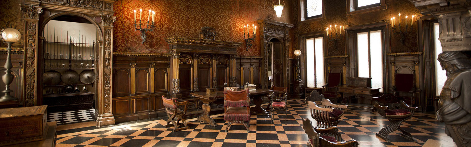 Capolavori di pittura, sculture, tappeti, pizzi e ricami, armi e armature, gioielli, porcellane, vetri, mobili, orologi solari e meccanici: oltre 5000 oggetti straordinari, dall’antichità al XIX secolo, immersi in un’atmosfera magica.