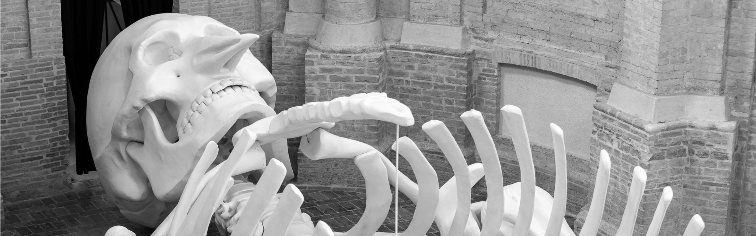 The work, created in absolute secrecy around 1988, is twenty-four meters long, nine wide, almost four meters high and faithfully reproduces a human skeleton with a long bird’s beak nose. A golden rod that starts from one of the phalanges is the “Cosmic Magnet” from which the work takes its name, a sort of magnet directed towards the universe.