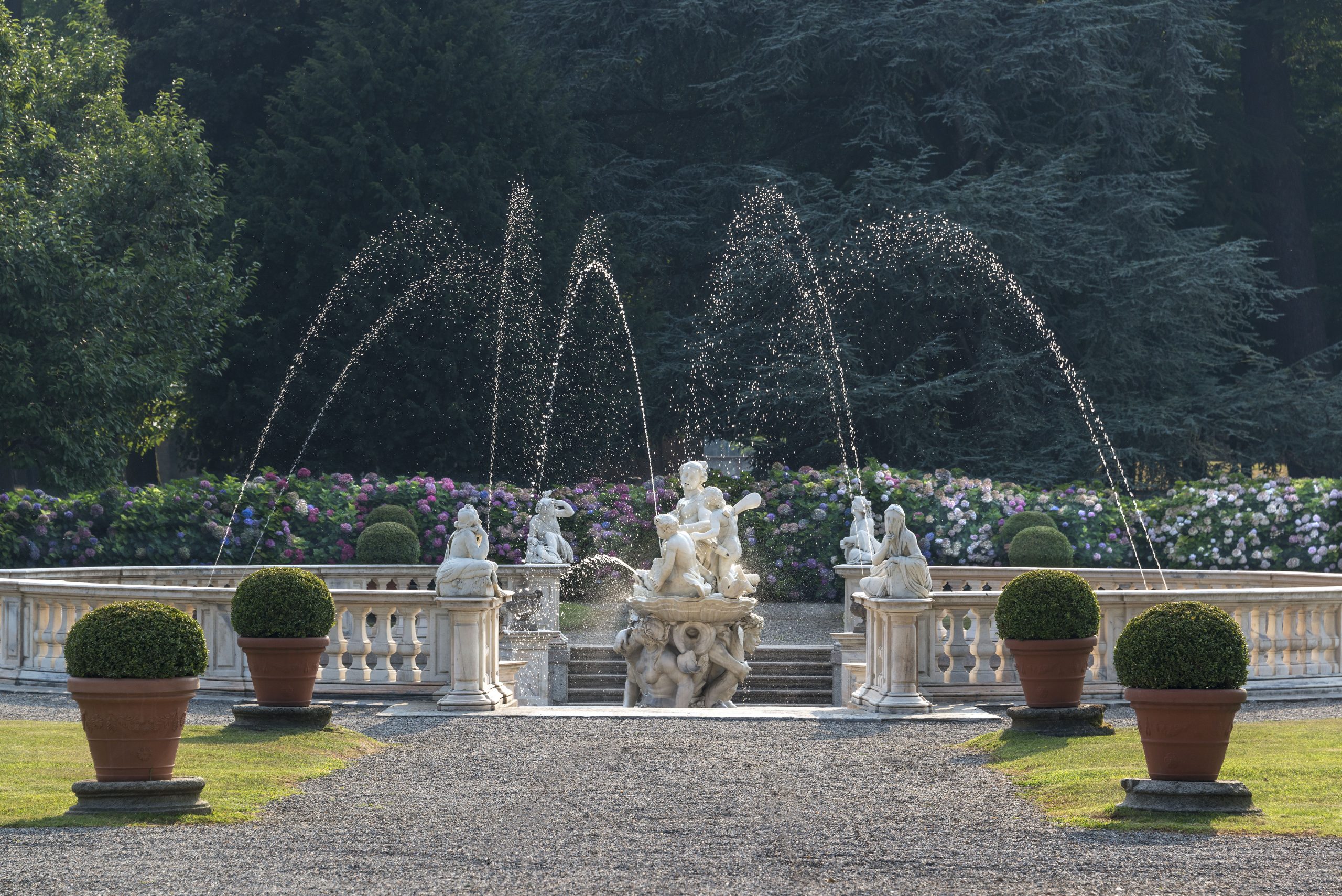 Il tema dell’acqua è un leitmotiv all’interno del parco della villa, dove fontane come quelle di Galatea e di Nettuno non solo decorano il giardino, ma sono essenziali per il mantenimento delle molteplici specie vegetali che lo abbelliscono. Questo spazio verde è un luogo di piacere e relax, ma anche un habitat vitale per la biodiversità locale, offrendo uno spettacolo naturale che muta con le stagioni.