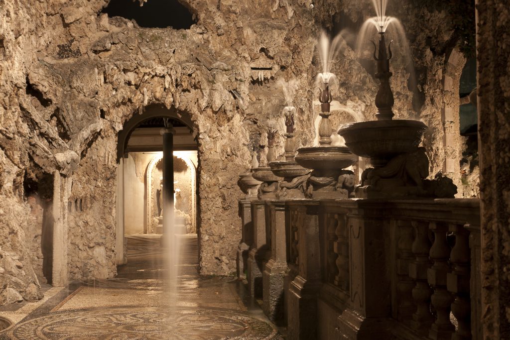 Il punto di forza della Villa è il suo famoso Ninfeo, un complesso di giochi d’acqua e grotte, che stupì persino Stendhal, il quale rimase incantato dalla bellezza e dall’ingegnosità del Palazzo delle Acque. Il Ninfeo, progettato da Martino Bassi, fu ideato per esporre una ricca collezione di dipinti, sculture e varie curiosità, oltre a ospitare gli ingegnosi scherzi d’acqua. Contribuirono alla decorazione della villa anche Camillo Procaccini, che realizzò i mosaici in ciottoli colorati, e il Morazzone, il quale dipinse il Mercurio dell’atrio d’ingresso con una tecnica illusionistica di prospettiva ‘sotto in su’.
